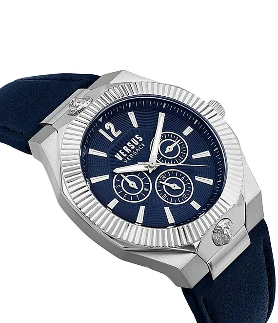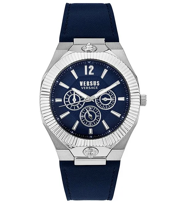 Versus By Versace Men's Echo Park Multifunction Blue Leather Strap Watch