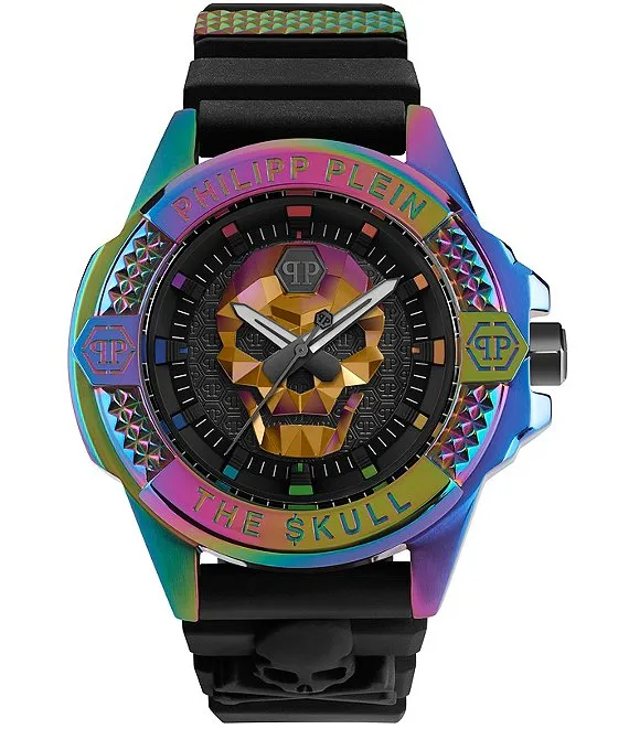 Men's The Skull Rainbow Quartz Analog Black Silicone Strap Watch