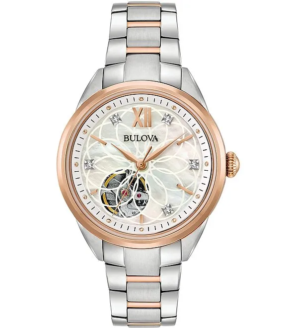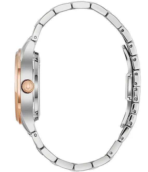 Bulova Women's Sutton Classic Quartz Analog Stainless Steel And Rose Gold Accent Bracelet Watch