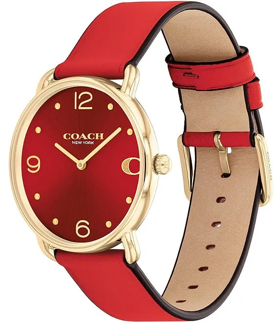 COACH Women's Elliot Red Leather Quartz Analog Watch