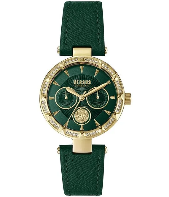 Versus Versace Women's Sertie Crystal Multifunction Green Leather Strap Watch