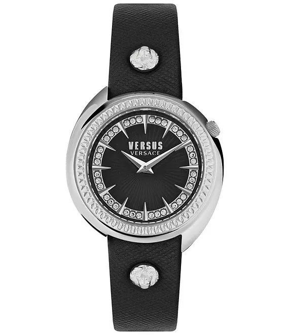 Versus By Versace Women's Tortona Crystal Two Hand Black Leather Strap Watch