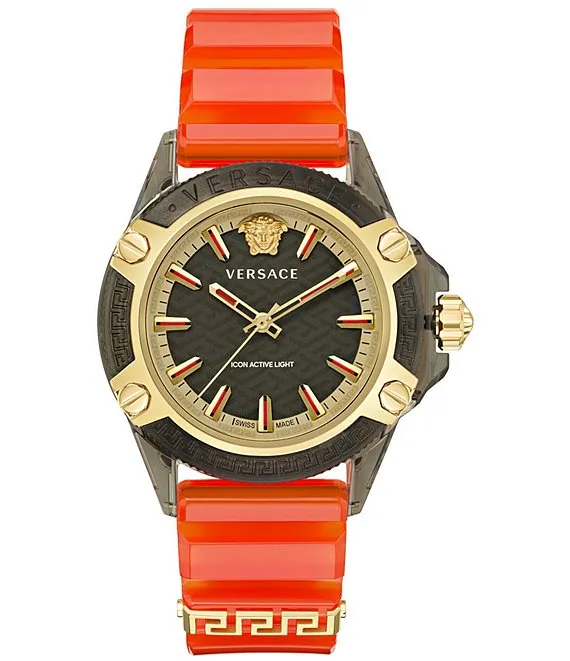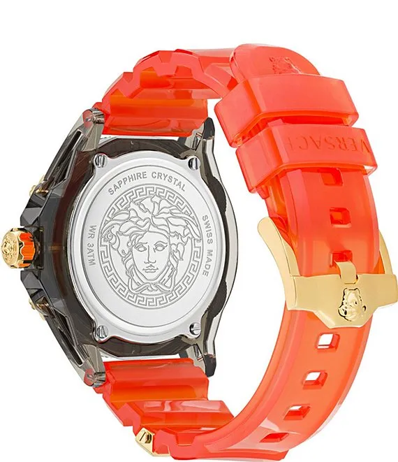 Versace Men's Icon Active Quartz Analog Orange Transparent Silicone Strap Watch