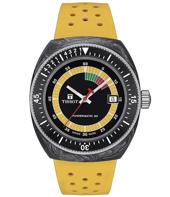 Unisex Sideral Tonneau Powermatic 80 Sport Collection Automatic Yellow Strap Watch