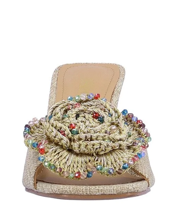 Abalina Crochet Beaded Ornament Dress Slide Sandals