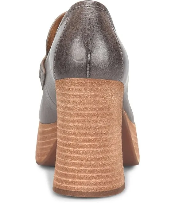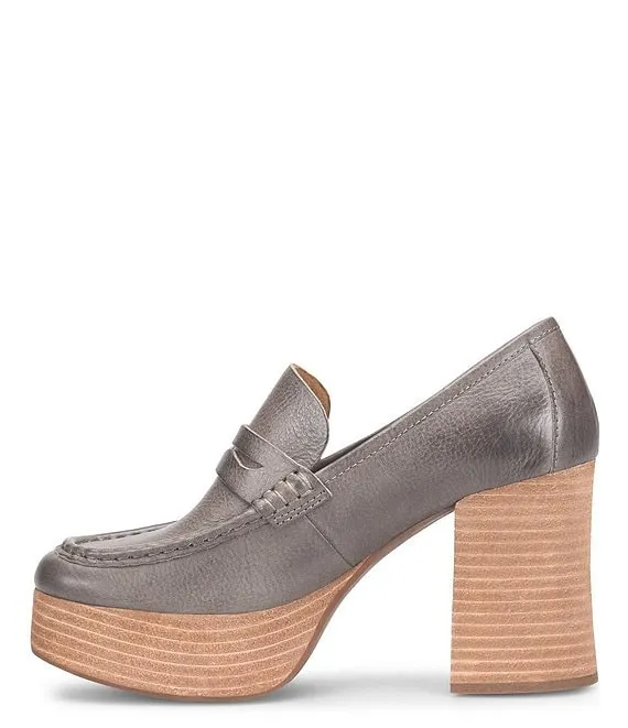 From Kork-Ease, the Barbara Leather Platform Block Heel Penny Loafer Pumps feature: