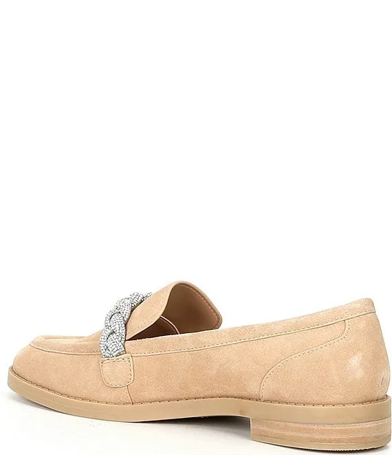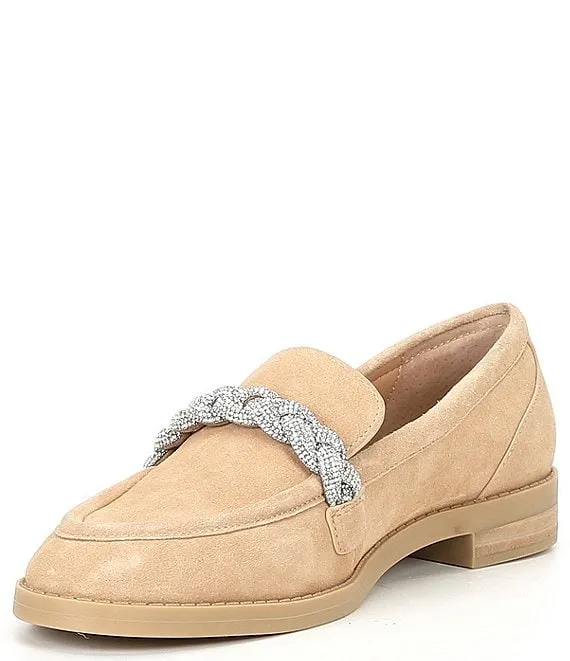 From Gianni Bini, the Bristow Suede Rhinestone Braid Loafers feature: