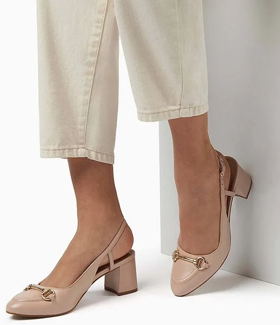 From Dune London, the Cassie Leather Bit Buckle Slingback Pumps feature: