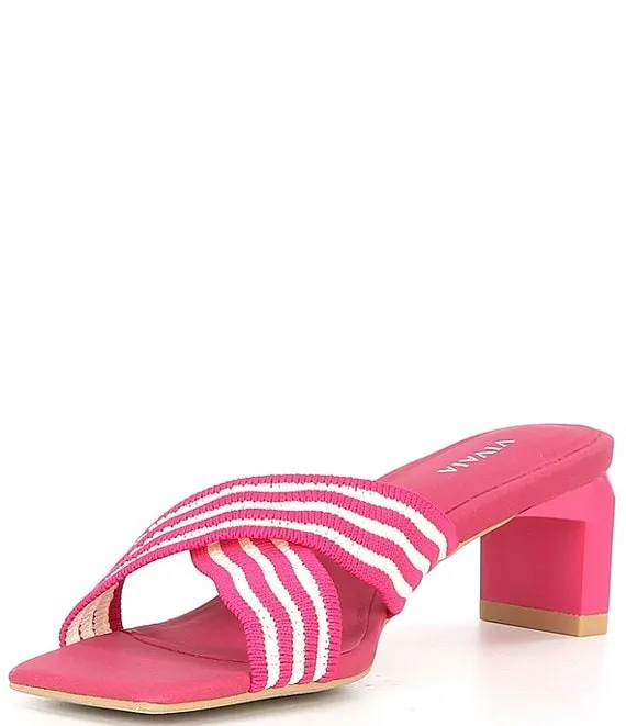 From VIVAIA, the Jennifer Stretch Knit Cross Band Slide Sandals feature: