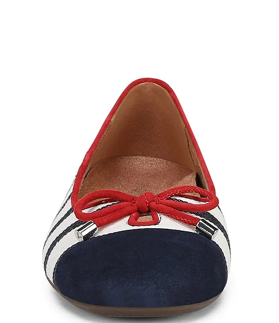 From Vionic, the Klara Bow Detail Stripe Ballet Flats feature: