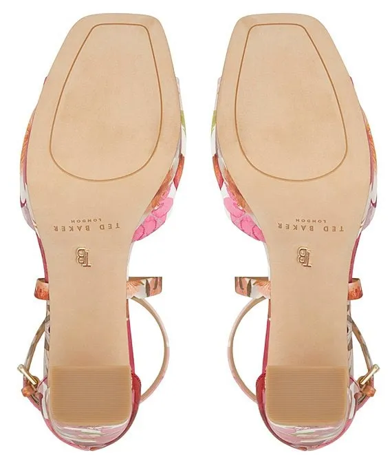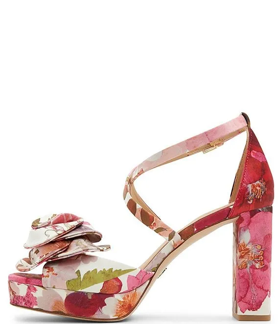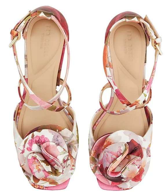 From Ted Baker London, the Maddy Rose Satin Floral Dress Sandals feature: