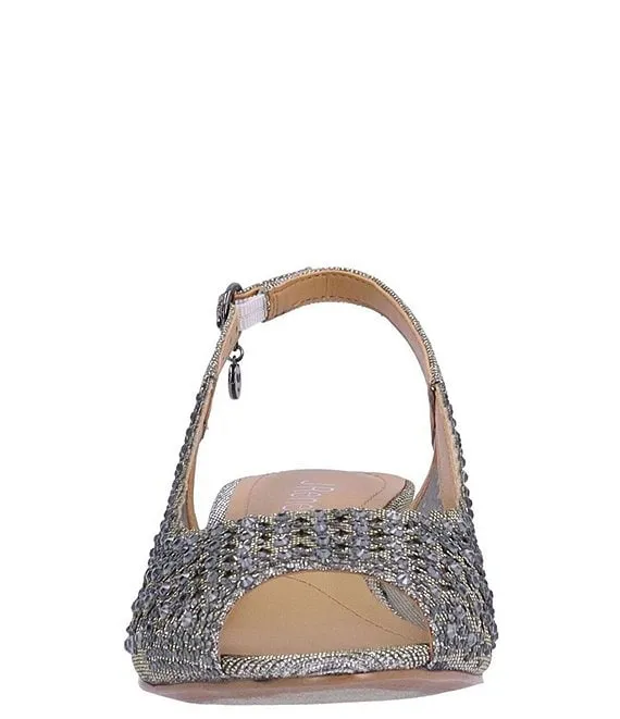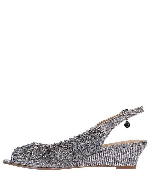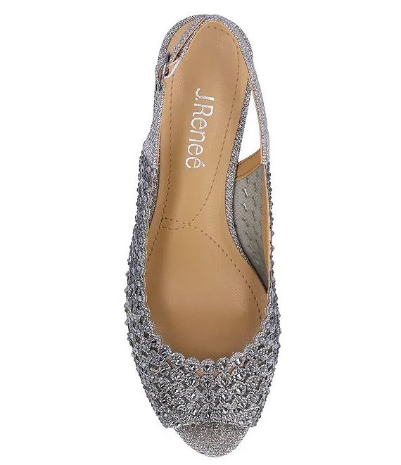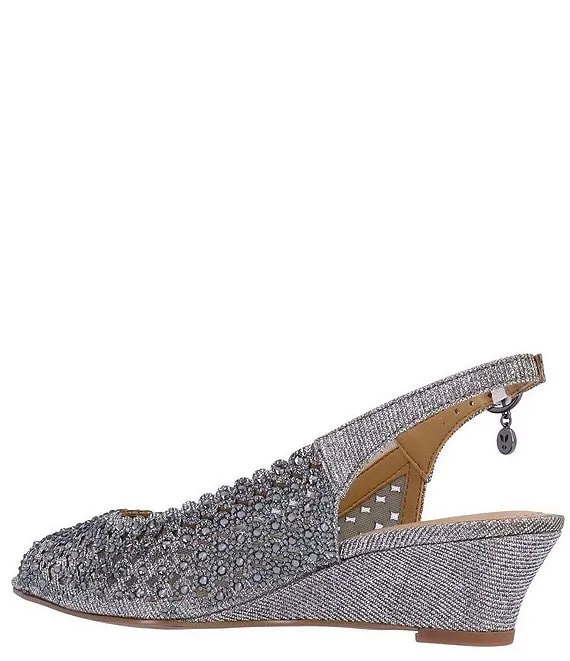 From J. Renee, the Malorie Glitter Fabric Rhinestone Peep Toe Slingback Wedges feature: