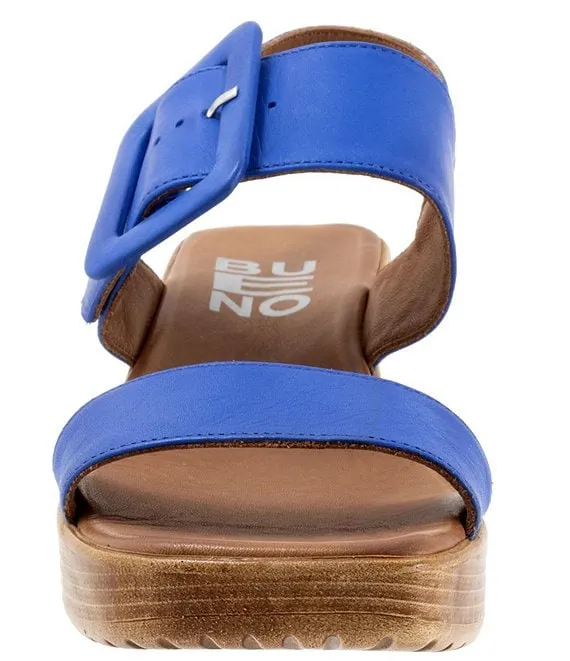 • Bueno Marcia Buckle Detail Leather Platform Wedge Sandals