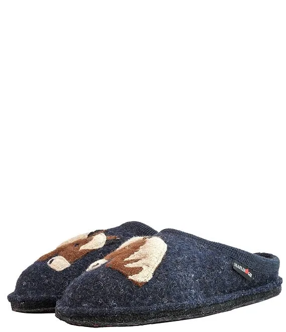 From HAFLINGER, the Poni Horse Appliqued Wool Mule Slippers feature: