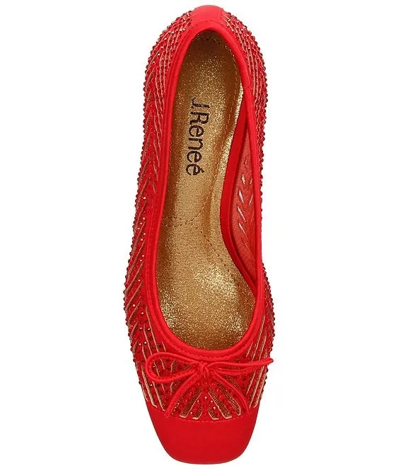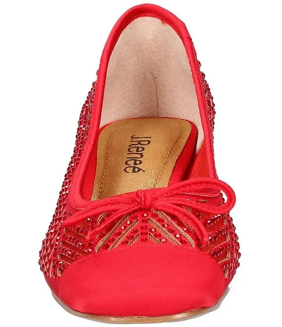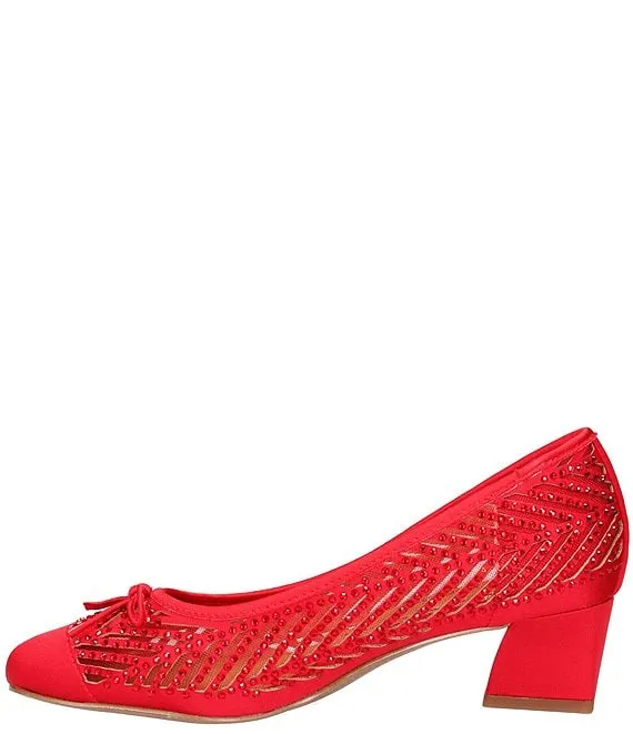 From J. Renee, the Saila Satin Rhinestone Mesh Bow Detail Pumps feature: