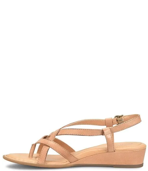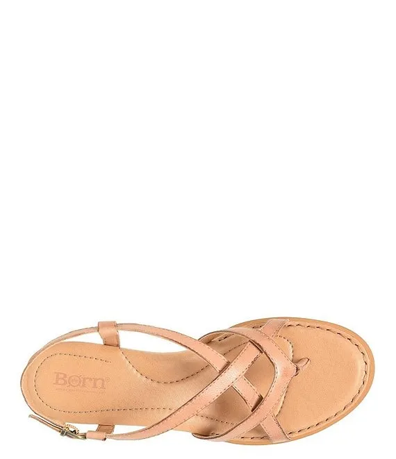 From Born, the Sibyl Leather Thong Wedge Sandals feature: