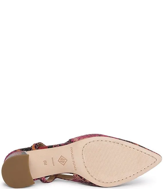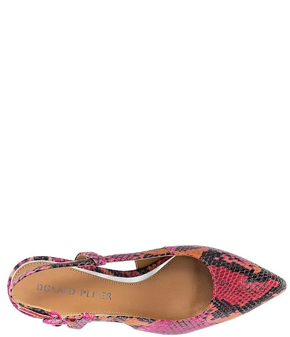 From Donald Pliner, the Song Snake Embossed Leather Slingback Dress Pumps feature: