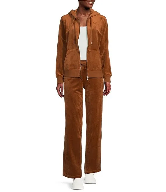 • Calvin Klein Velour Wide Leg Ribbed Drawstring Waist Coordinating Pants