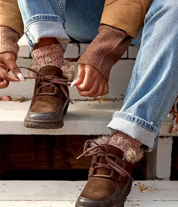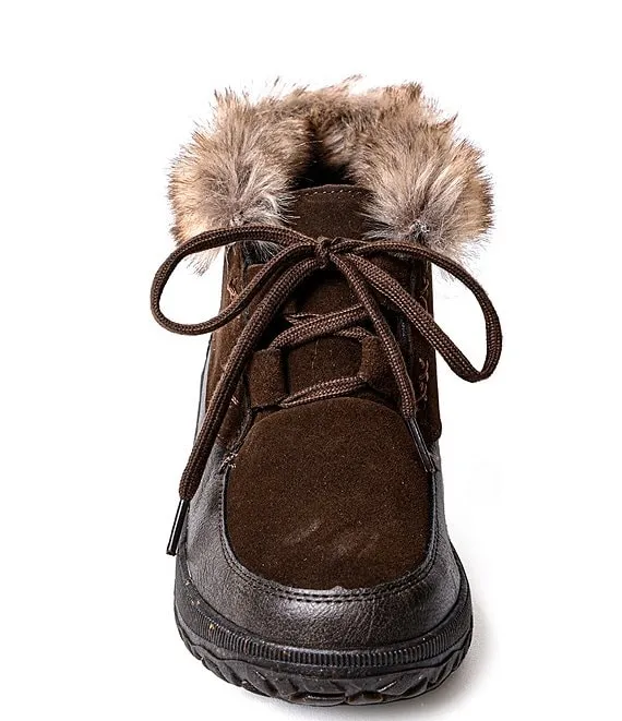 From Minnetonka, the Women's Tinley Suede Faux Fur Ankle Booties feature:
