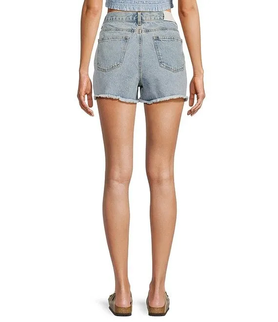 High Rise Front Zipper Button Unhemmed Denim Shorts