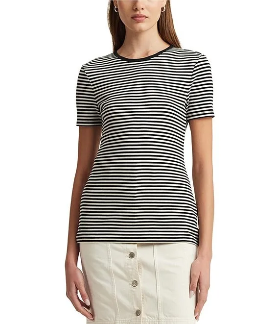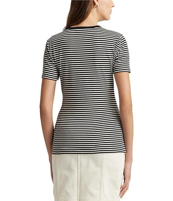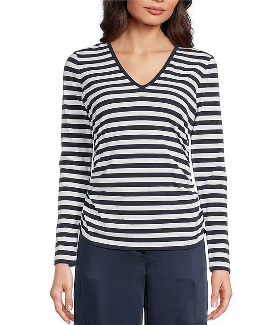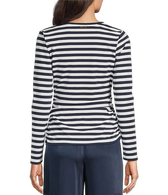 MICHAEL Michael Kors Double Knit Ruched Stretch Stripe Print V-Neck Long Sleeve Top