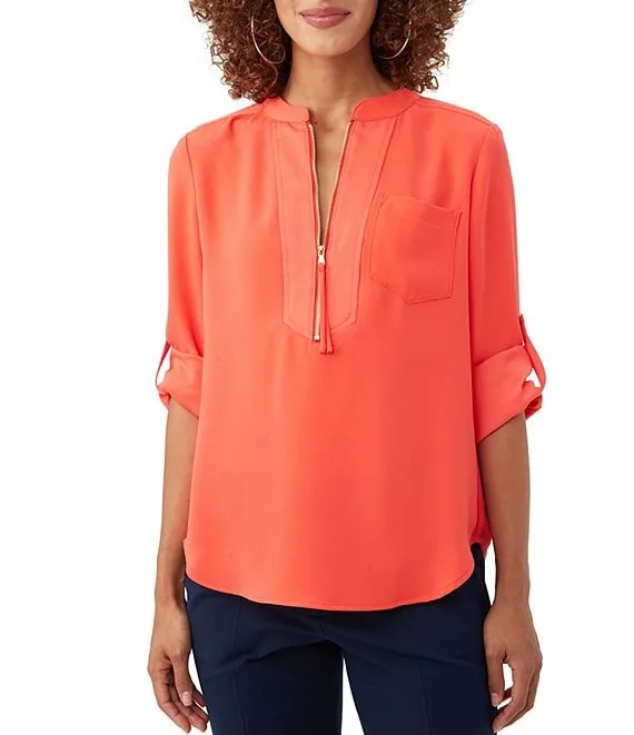 Cinched Bungee Waist Half Zip Pullover Jacket