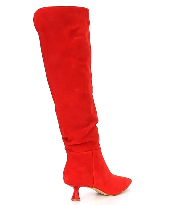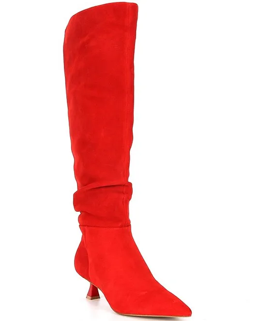 Ryder Narrow Calf Suede Slouchy Kitten Heel Tall Boots