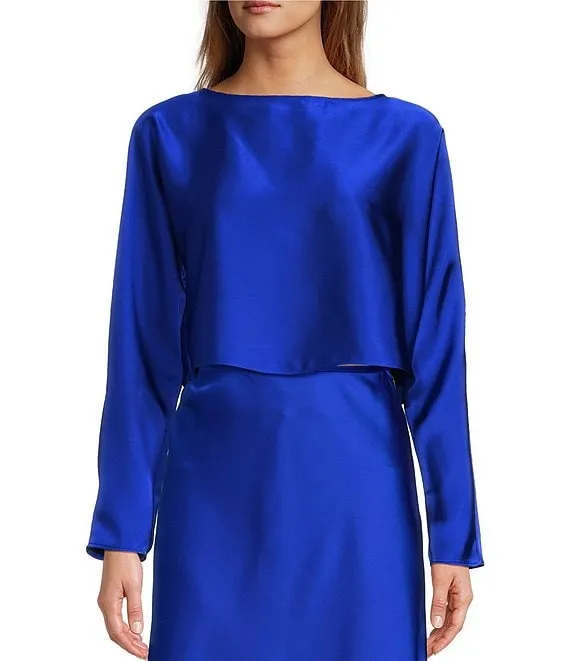 Antonio Melani Blyss Boat Neck Long Sleeve Coordinating Satin Blouse