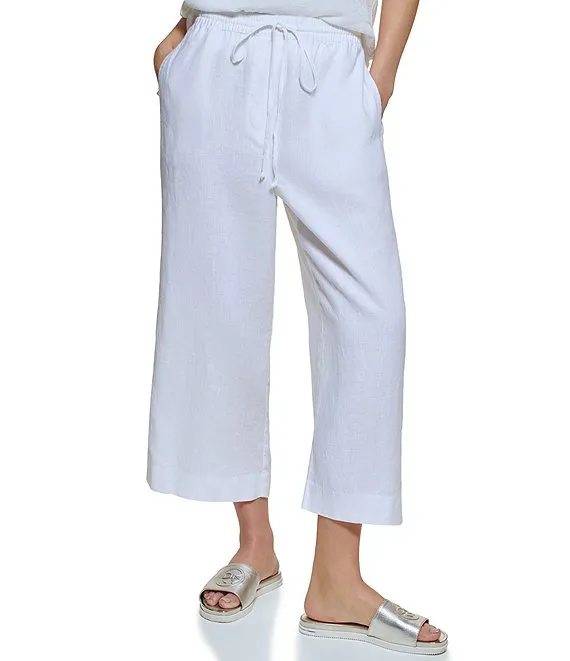 Wide Leg Drawstring Woven Linen Coordinating Pocketed Pants