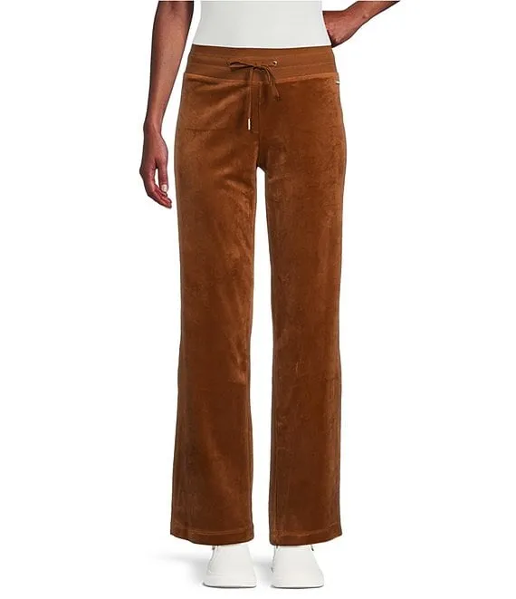 Calvin Klein Velour Wide Leg Ribbed Drawstring Waist Coordinating Pants