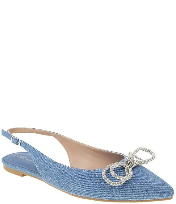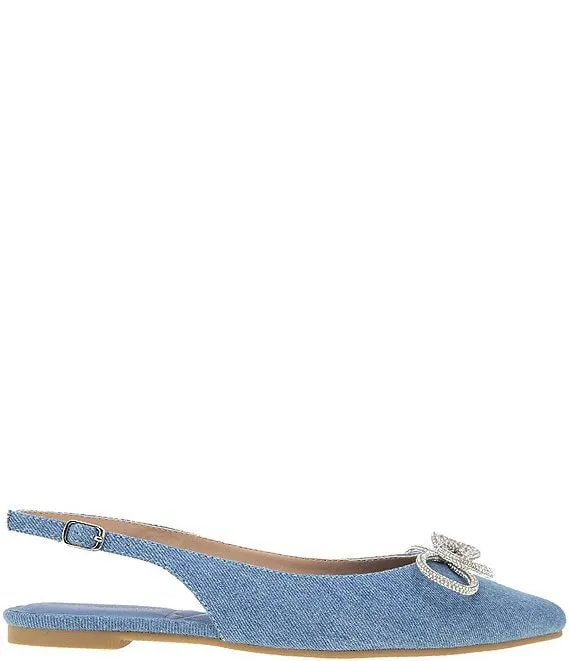 Kristin Denim Rhinestone Bow Slingback Ballet Flats