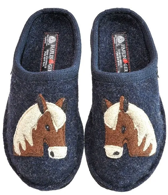 HAFLINGER Poni Horse Appliqued Wool Mule Slippers