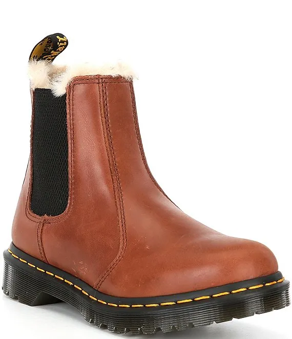 Dr. Martens Women's 2976 Leonore Faux Fur Leather Cold Weather Chelsea Booties
