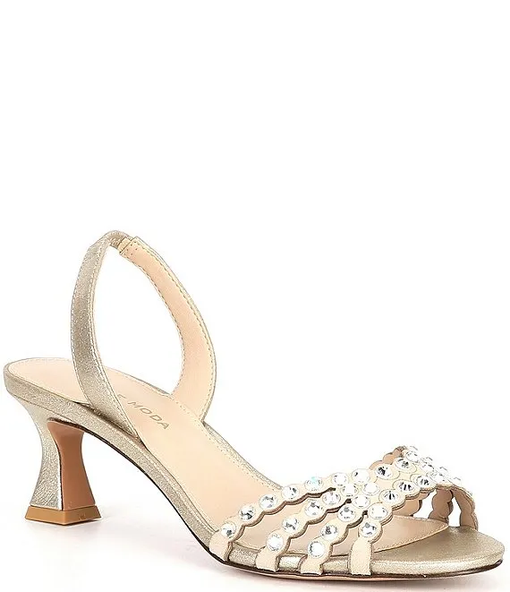 Felice Shimmer Suede Rhinestone Embellished Slingback Dress Sandals