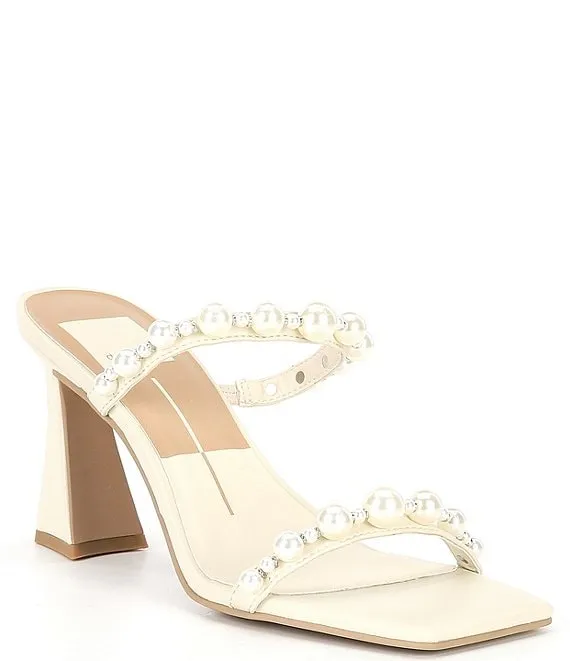 Naja Pearl Studded Square Toe Dress Sandals