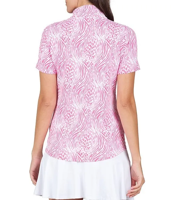 Alena Printed Short Sleeve Zip Mock Neck Top