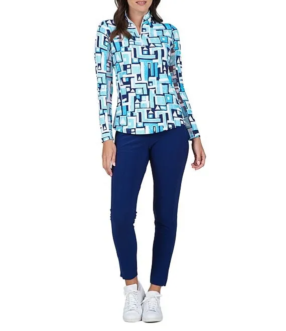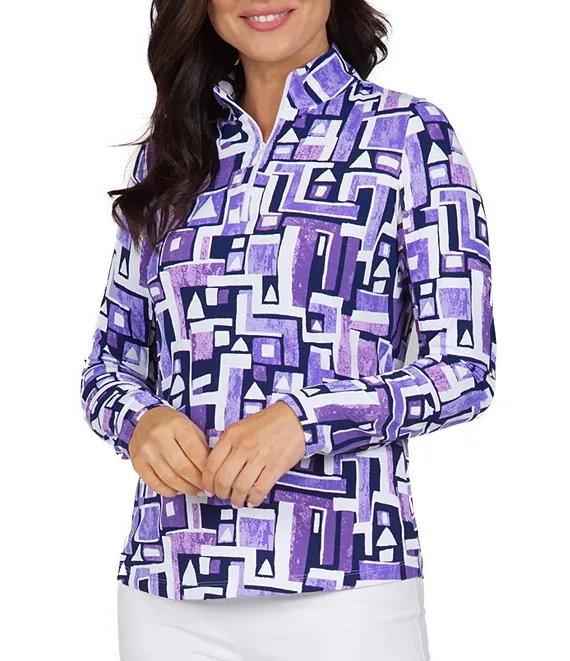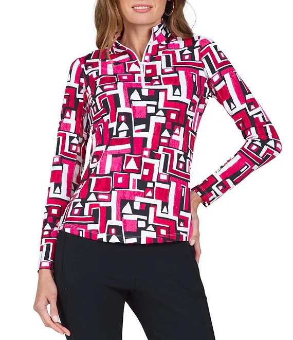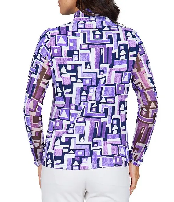 Jennifer Printed Long Sleeve Zip Mock Neck Top