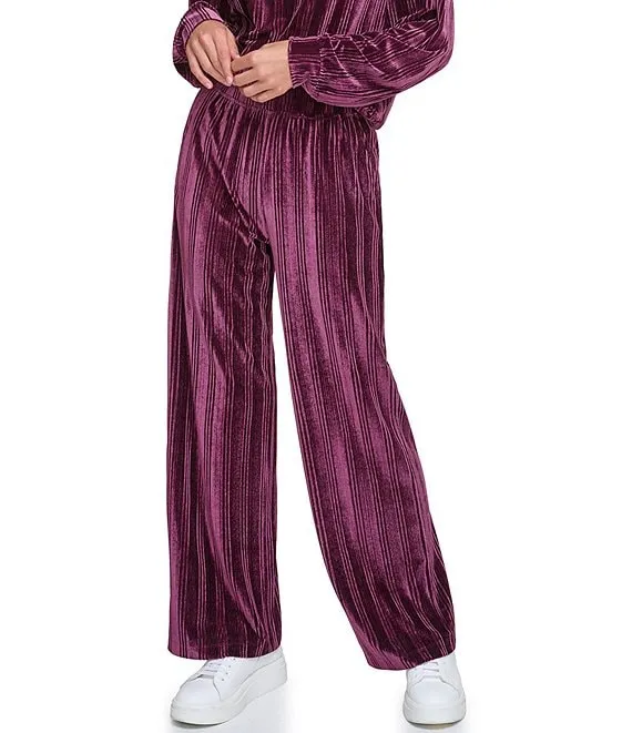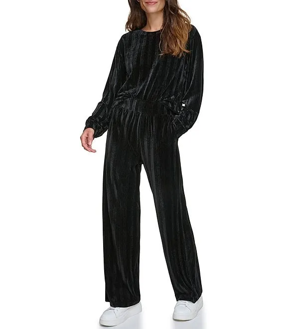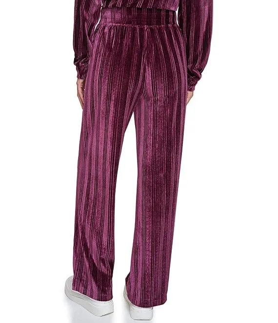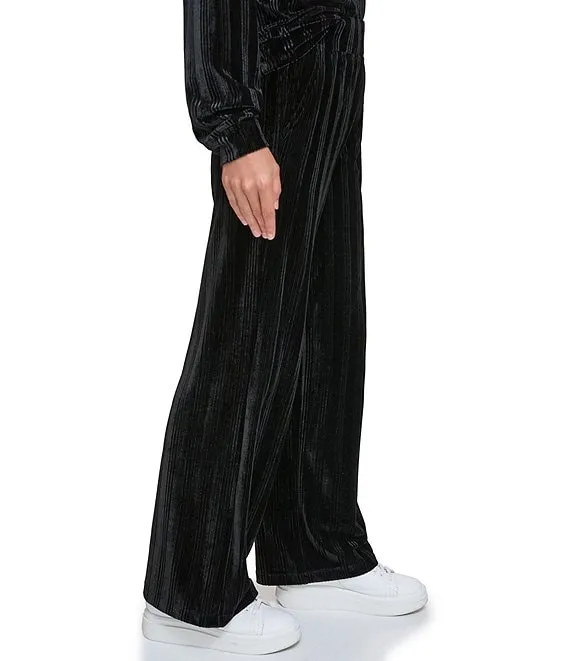Solid Velvet Ribbed High Waist Wide Leg Coordinating Pull-On Pants