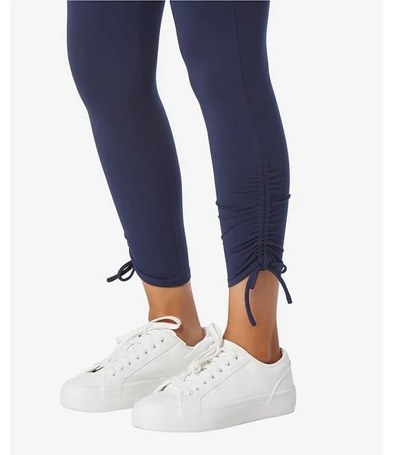 Stretch High Waisted Ankle Ruched Hem Pull-On Leggings