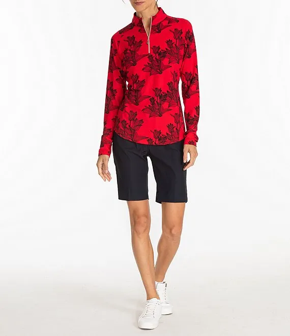 Tempo Printed UPF Long Sleeve Quarter Zip Mock Neck Top
