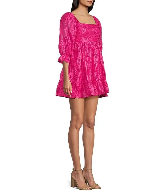 3/4 Sleeve Square Neck Babydoll Dress