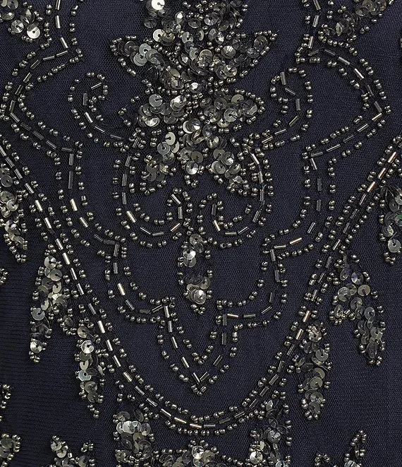 Adrianna Papell Beaded Illusion 3/4 Sleeve Scoop Neck Gown