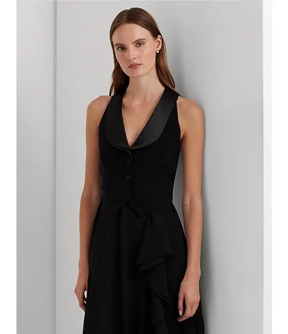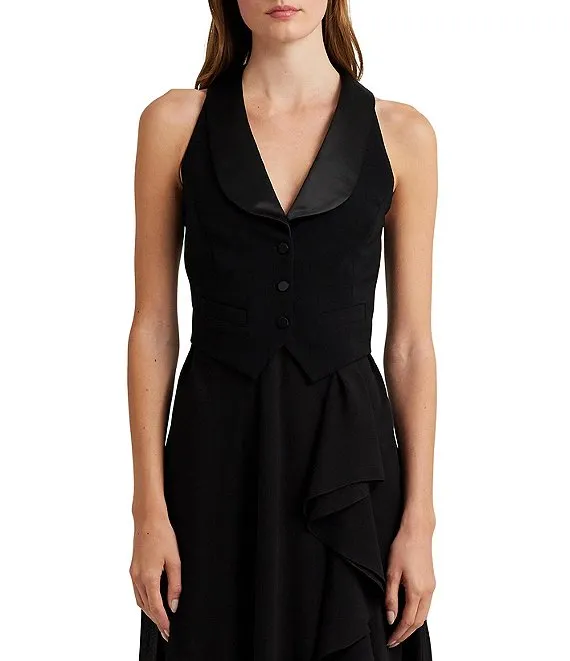 - satin shawl collar with a deep v-neckline