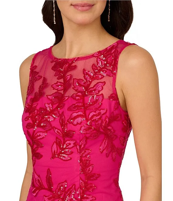 Adrianna Papell Embroidered Sequin Boat Neckline Sleeveless Sheath Dress