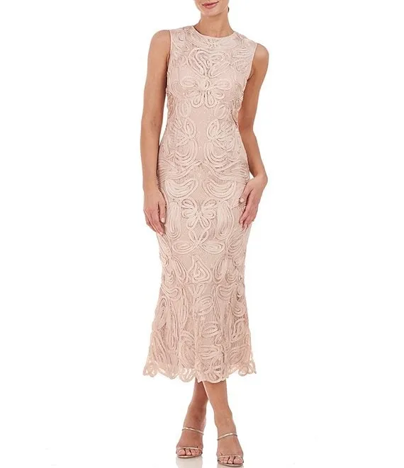 Embroidered Soutache Lace Round Neck Sleeveless Mermaid Midi Dress