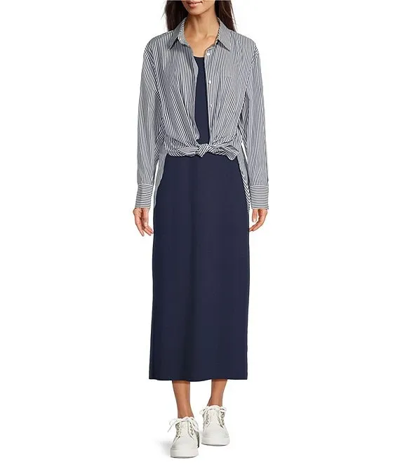 Mariana Knit Jersey Scoop Neck Sleeveless Midi Shift Dress