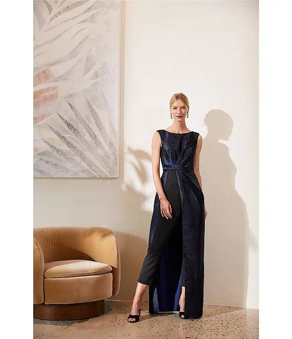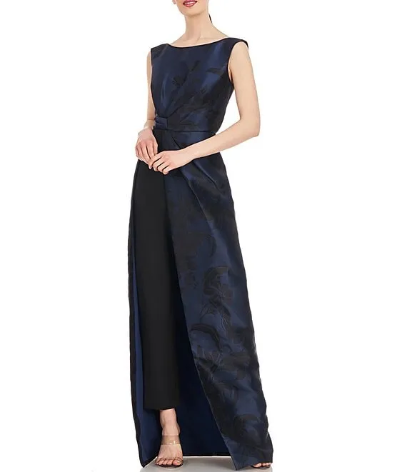 From Kay Unger, this jumpsuit features: