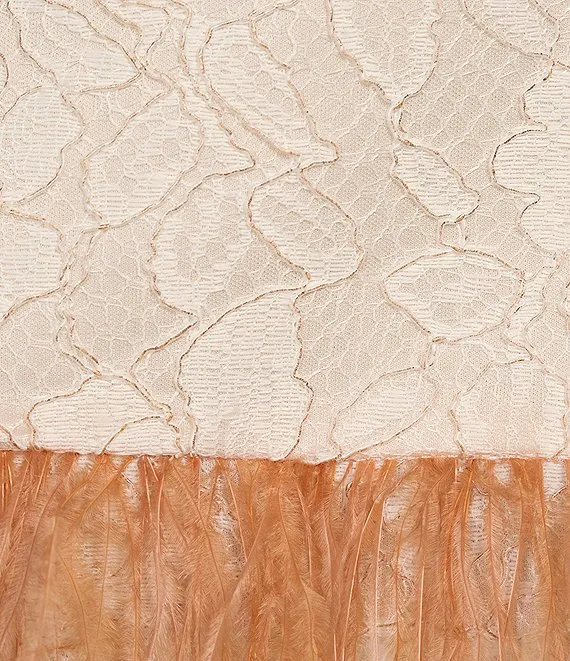 Taylor Metallic Lace Crew Neck Sleeveless Feather Trim Dress