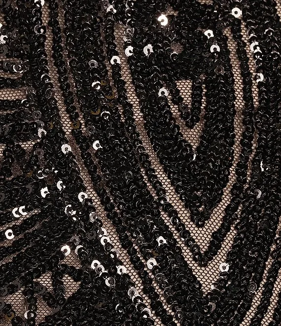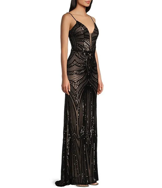Placement Sequin Deep V-Neck Spaghetti Strap Long Dress