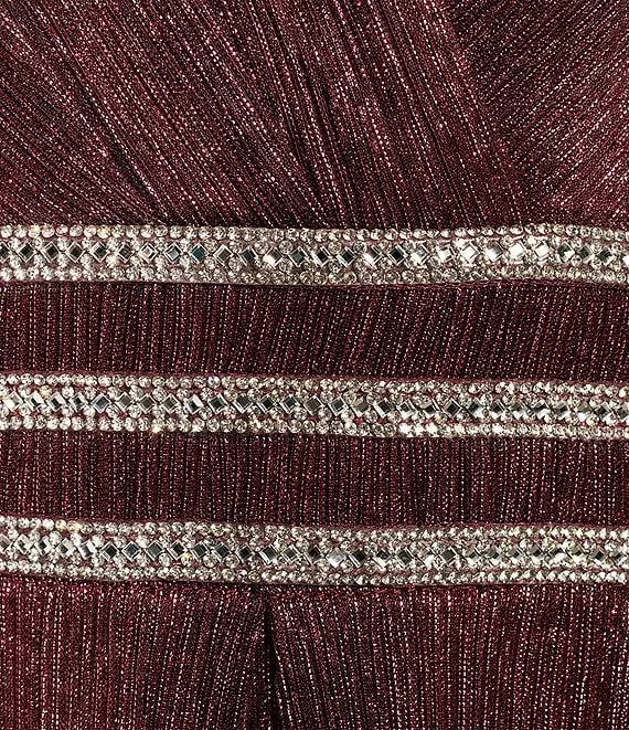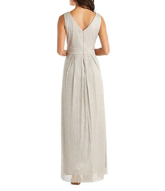 Pleated Metallic V-Neck Sleeveless Gown